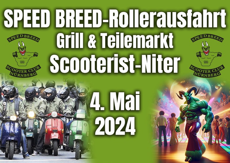 - Im Anschluss ab 19:00 Uhr Scooterist-Nighter mit dem Scooterboy Sound System in der Dianastraße 106, 90441 Nürnberg